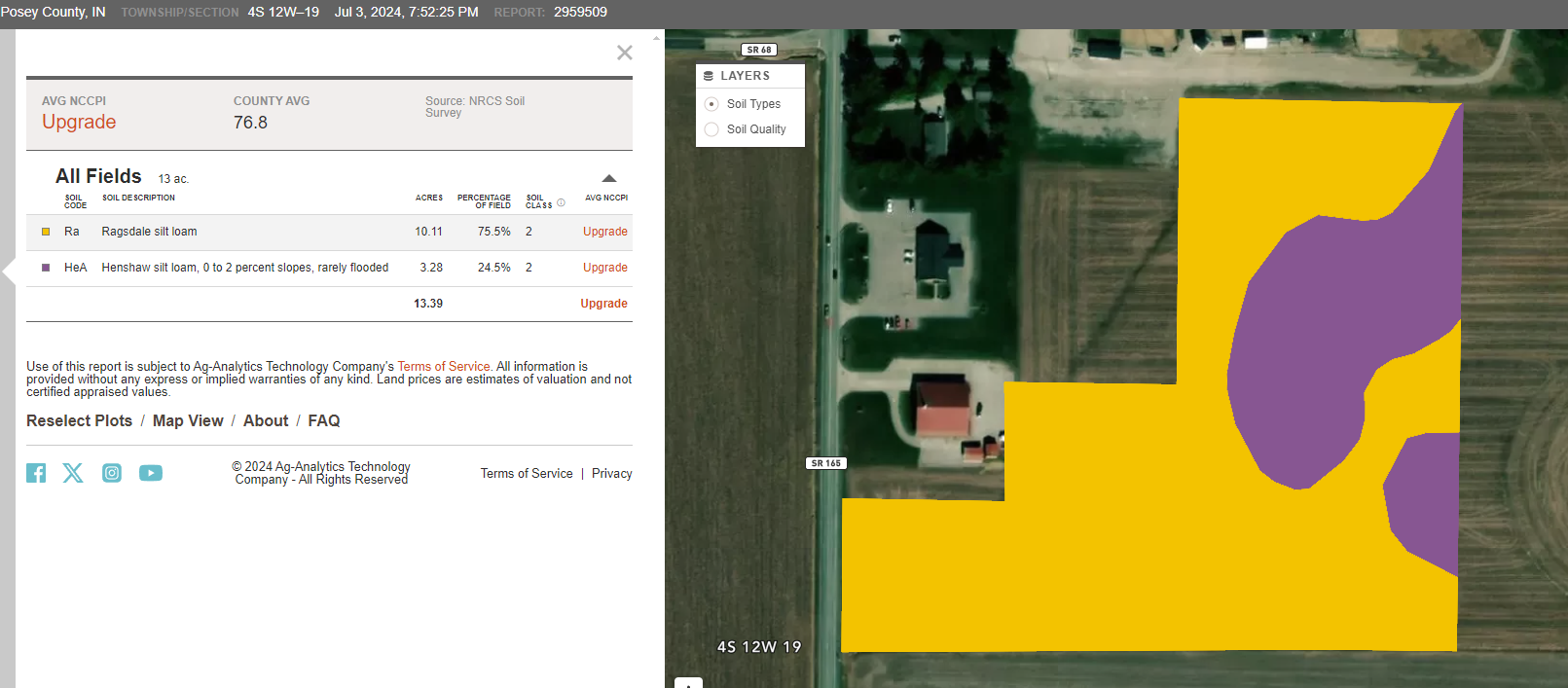Possession: All buyers will get possession after the crop has been removed. Possession is subject to the current tenant rights for 2024 calendar year.